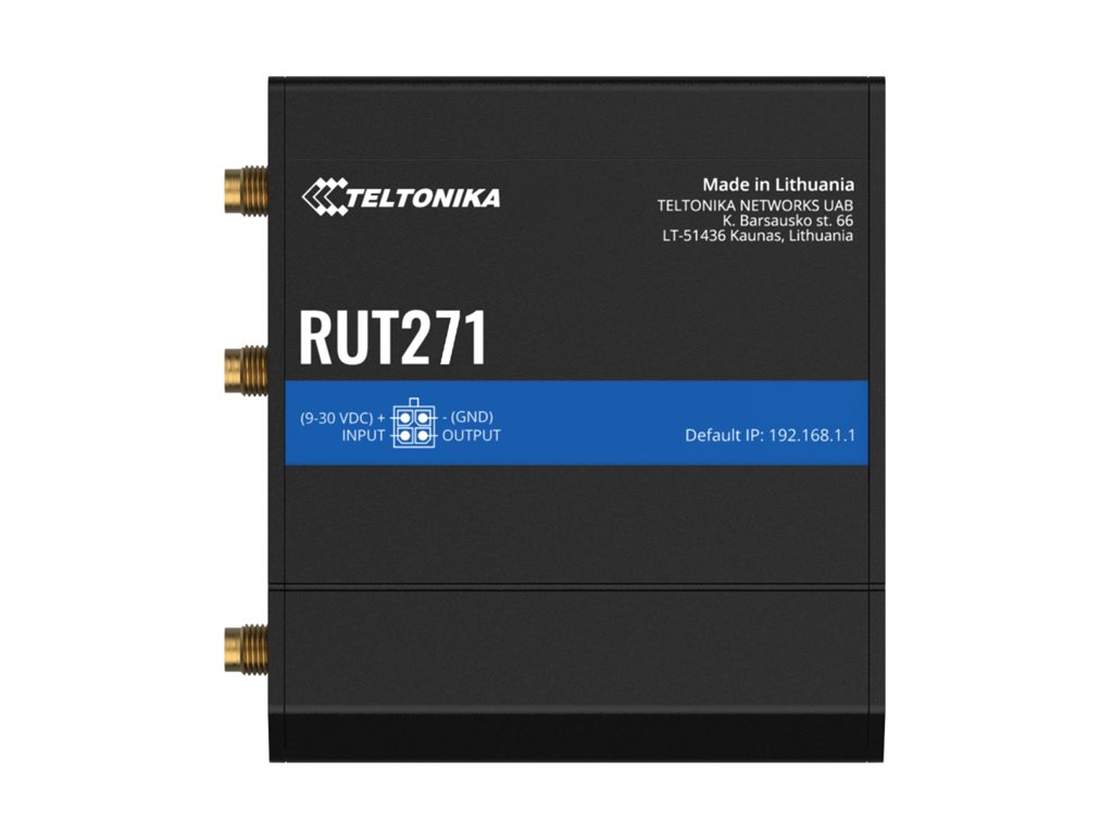 | Produktbeskrivelse | Teltonika RUT271 - trådløs router - WWAN - Wi-Fi - 4G, 5G - DIN monterbar på skinne, væg-monterbar, overflademonterbar |