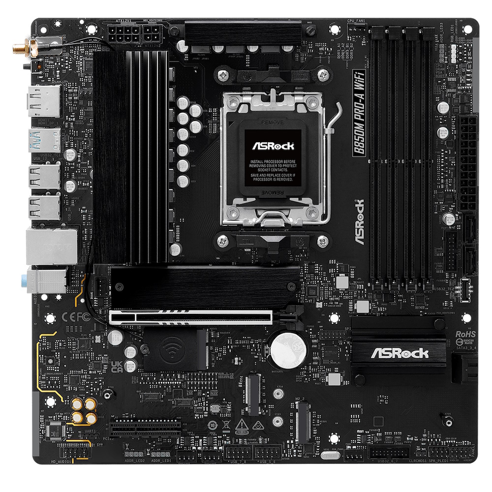 ASRock B850M Pro-A WiFi - mATX - Socket AM5 - WiFi 6E - 4x DDR5 slots - HDMI 2.1 - DisplayPort 1.4 - Dragon RTL8125BG