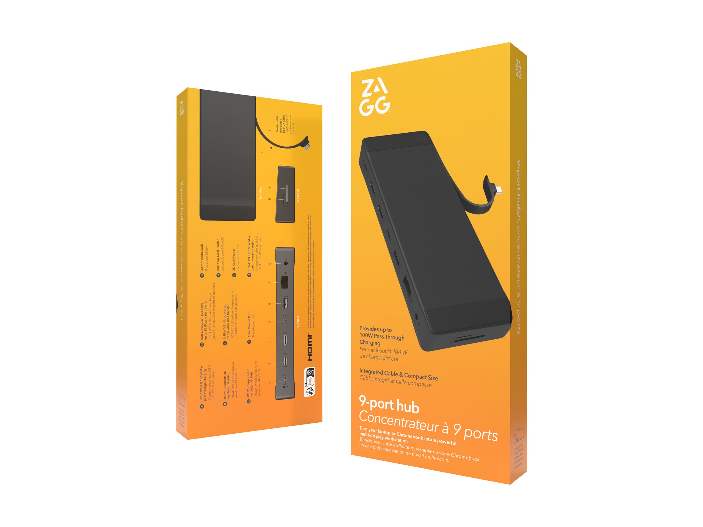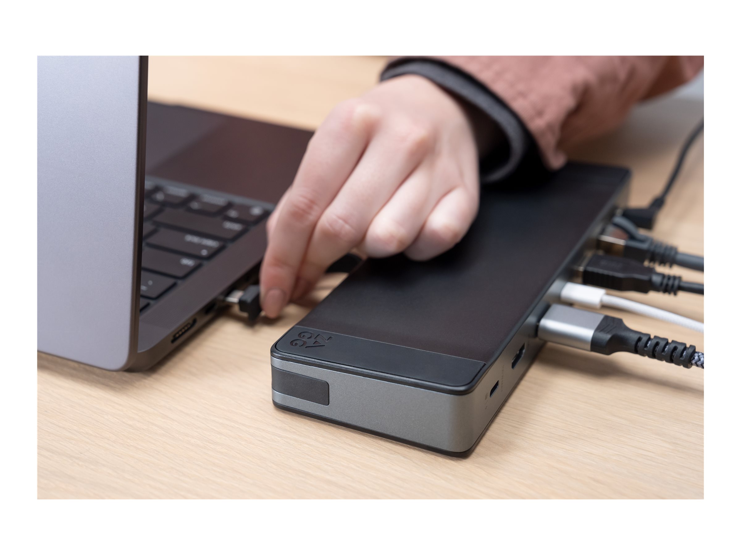 ZAGG-dockingstationen forbedrer tilslutningsmuligheder og enkelhed for enhver arbejdsplads. Den har et integreret USB-C-kabel, der giver en pålidelig forbindelse og samtidig giver mulighed for Power Delivery på op til 100 W, så enhederne forbliver opladede og klar til brug. Med flere grænseflader, herunder netværk, lyd/video og forskellige USB-typer, giver denne dockingstation tilslutningsmuligheder til eksterne enheder og skærme.