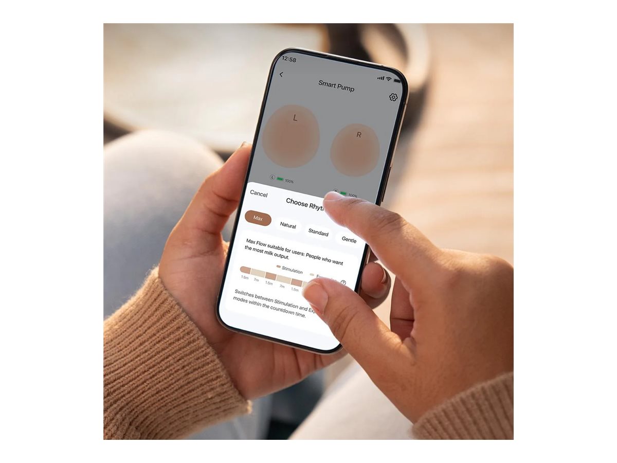 | Specielle Funktioner | Heatflow-teknologi, varme funktion, 7 temperaturindstillinger, temperatur interval 35 °C - 41 °C, OptiRhythm-teknologi, op til 300 mmHg sugtryk, læksikker design, 3 cykelhastigheder, 4 pumperytmer, SmartTimer, 150 ml kapacitet |