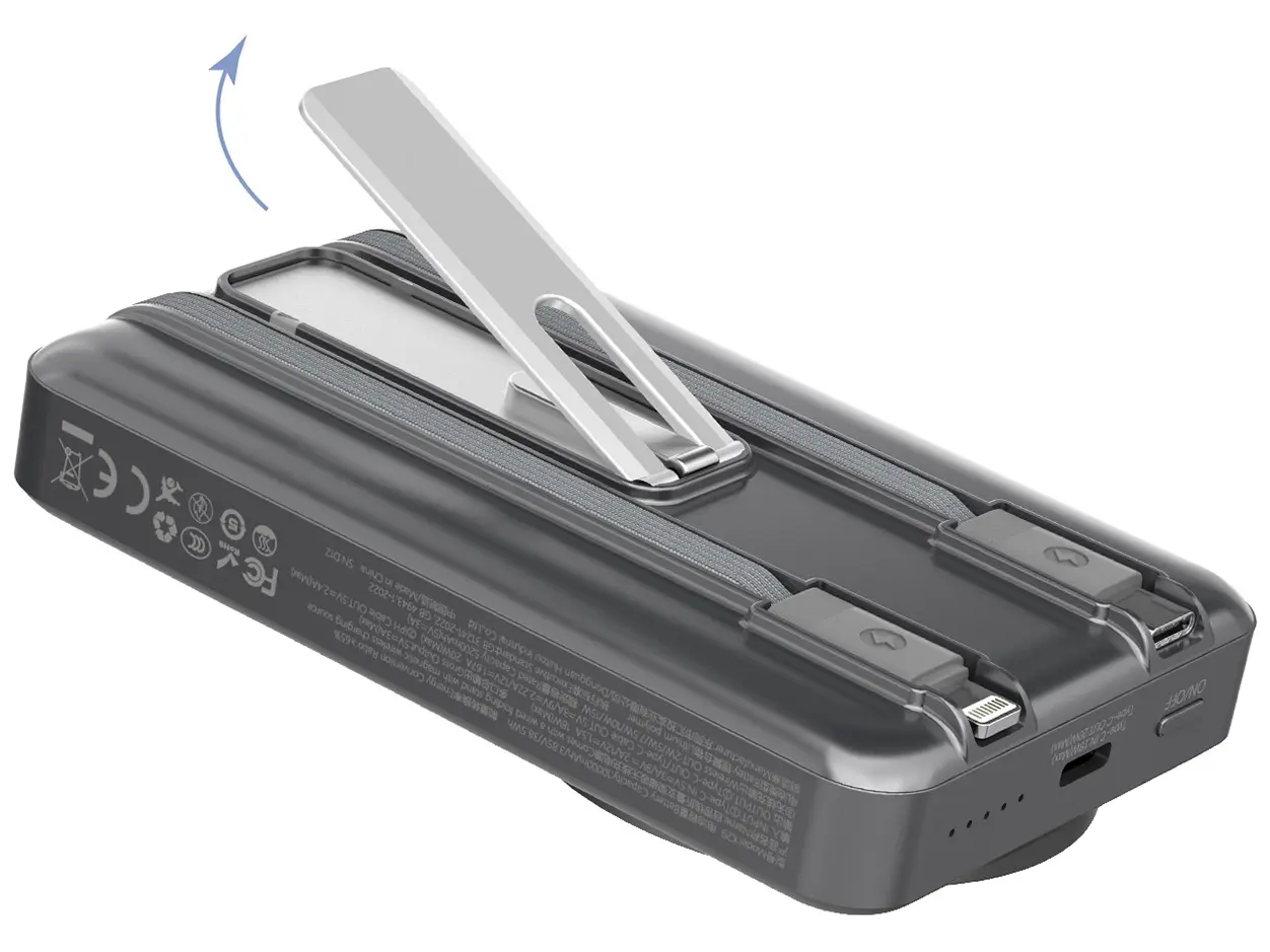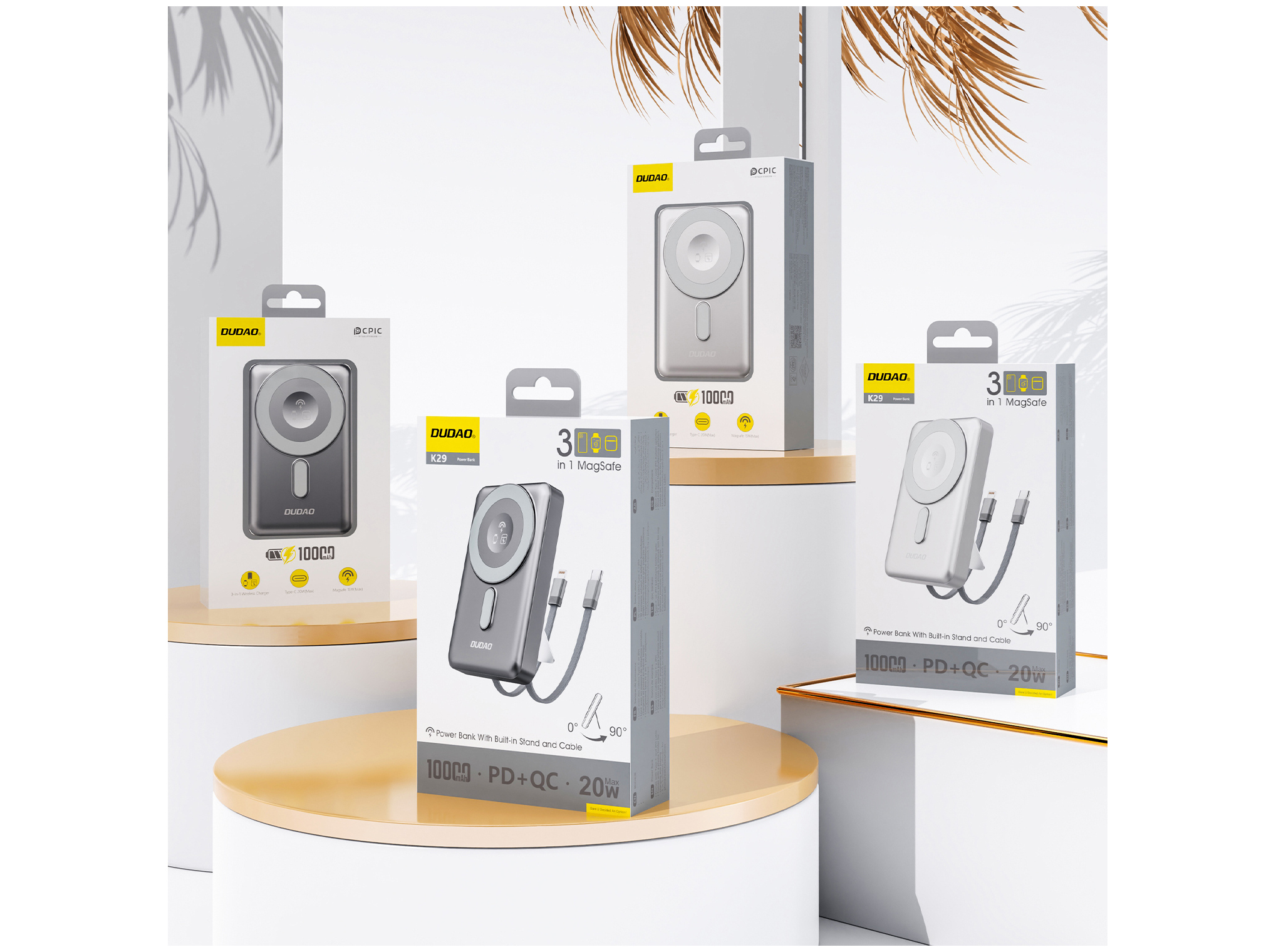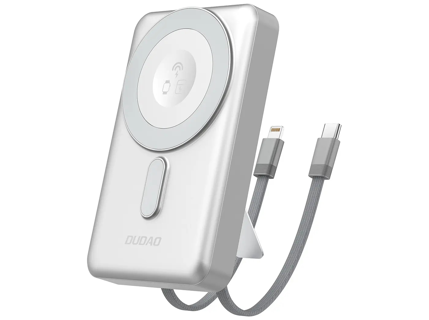 Dudao - Wireless Powerbank - 10000 mAh - 20 Watt - 3A - MagSafe kompatibel - 2 output-stikforbindelser (Lightning Cable x1, USB-C Cable x1, Wireless Charging) - Sølv