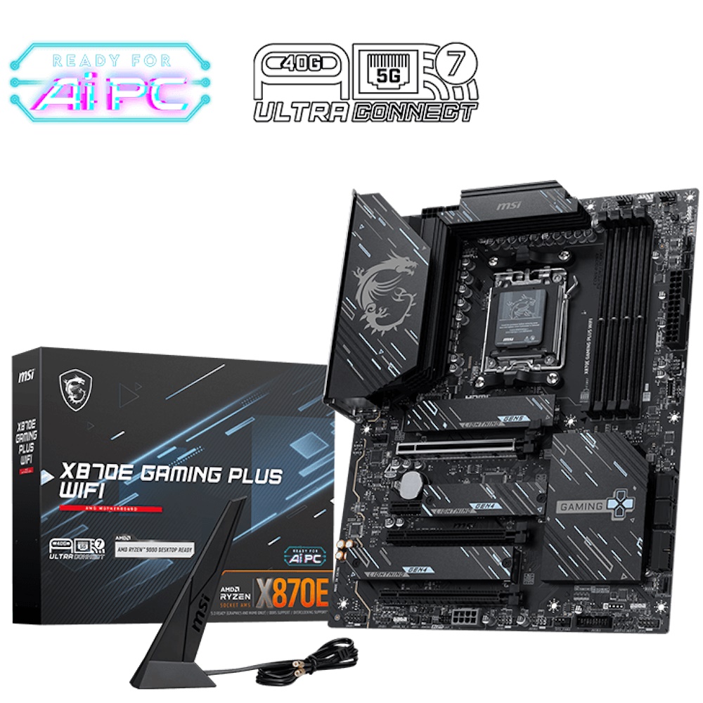 | Produktbeskrivelse | MSI X870E GAMING PLUS WIFI - bundkort - ATX - Socket AM5 - AMD X870E |