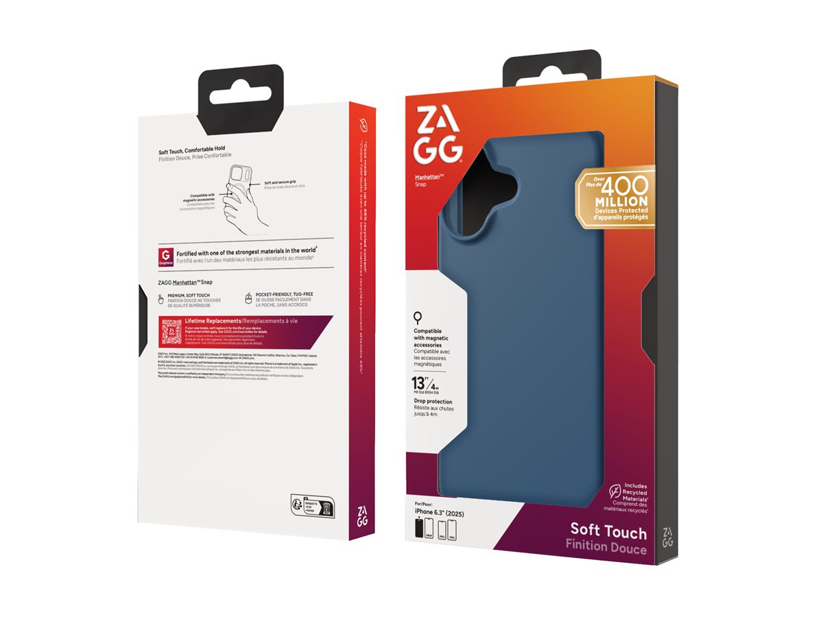 ZAGG Manhattan Snap-etuiet beskytter din mobiltelefon uden at gå på kompromis med stil og funktionalitet. Dette bagcover er fremstillet af letvægts-silikone med en blød overflade og er designet med henblik på komfort og greb. Det innovative grafenforing understøtter trådløs opladning, hvilket gør det til et praktisk valg til daglig brug. Dette cover overholder MIL-STD 810G 516-standarderne og giver pålidelig beskyttelse mod fald fra højder på op til 4 m. Med 48 % genanvendt indhold bidrager det til en mere bæredygtig fremtid.