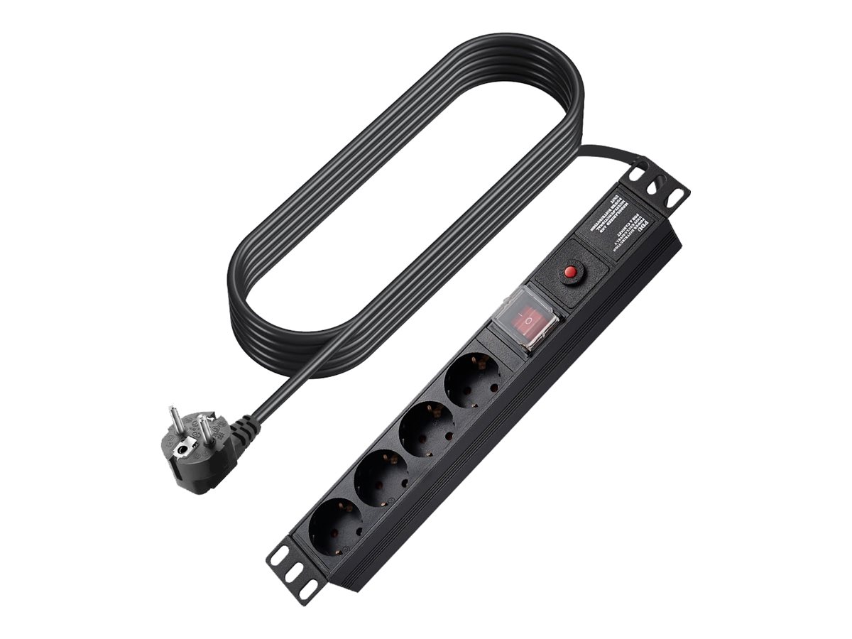 Med fire CEE 7/3-udgangsstik giver denne strømfordelingsliste nem adgang til strøm til flere enheder, hvilket gør den ideel til brug i hjemmet eller på kontoret.