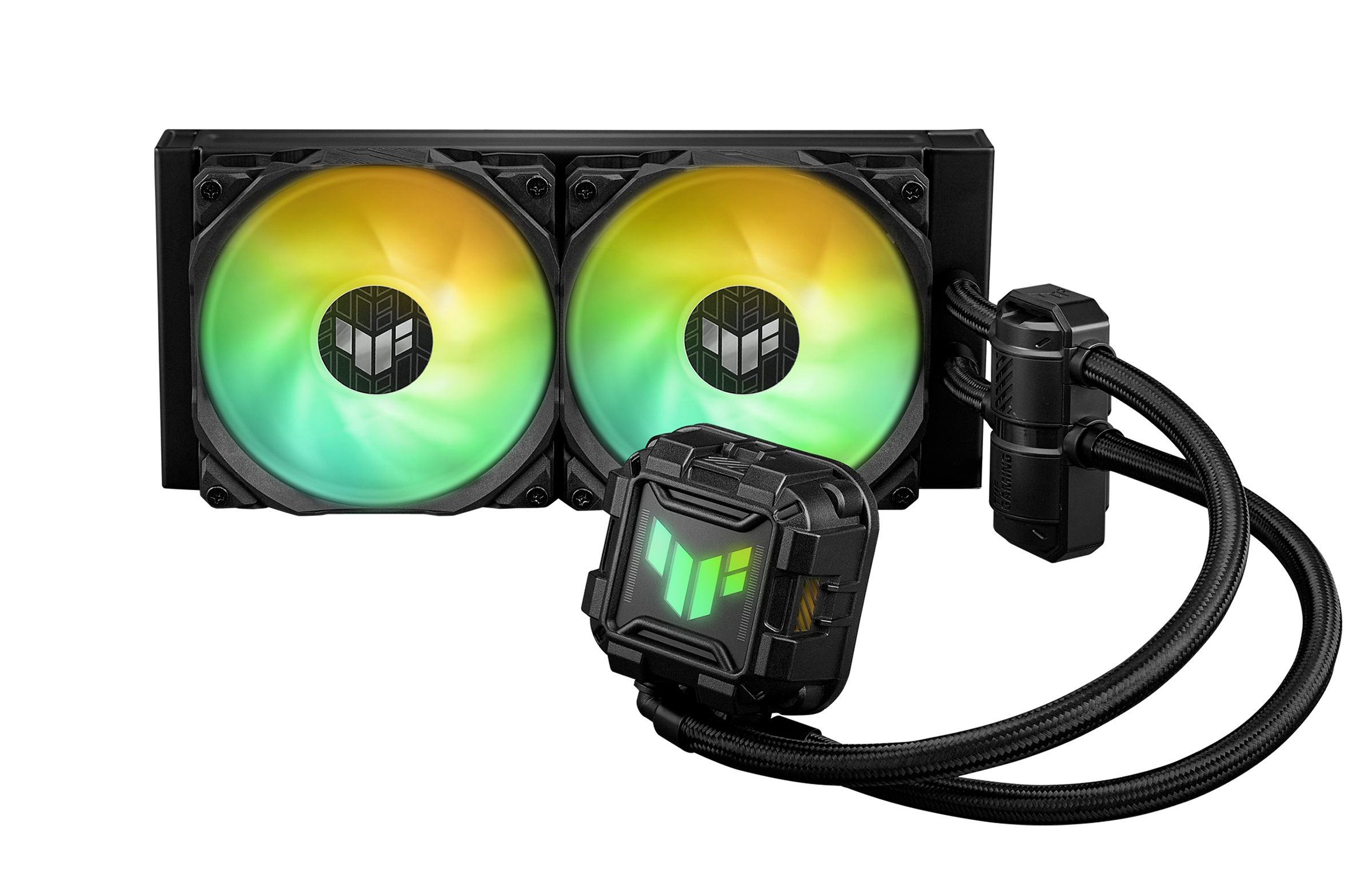 | Pakke Indhold | Skruer, monteringsbeslag, termisk fedt, 1-til-3 ARGB-opdeler, 1-til-2 blæserdeler, TUF Gaming-mærkat, 2 x ARGB-blæsere |