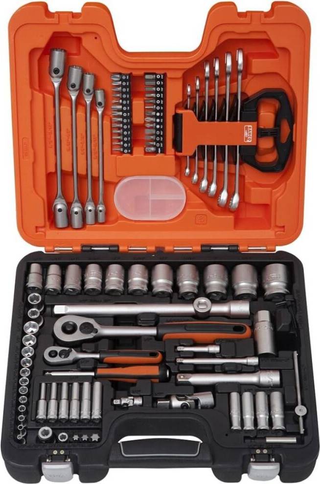 | Produktbeskrivelse | Bahco - Bahco-S910 - Værktøjssæt - 91 Dele - Inkl. Skruetrækkere - Inkl. Tænger - Inkl. Nøgler - Inkl. Skralde - Inkl. Opbevaringskasse |