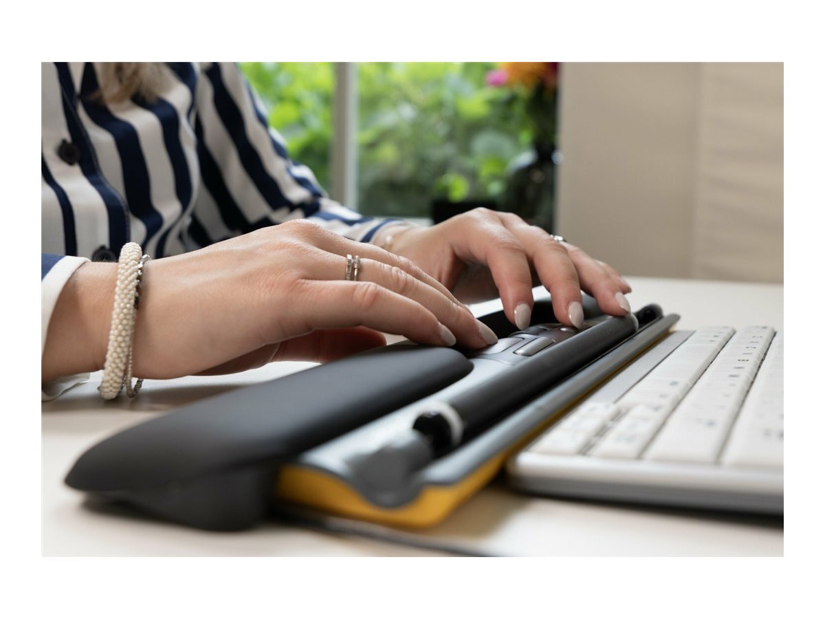 ErgoSlider Plus er designet med forhøjet håndledsstøtte og en rullestang, der sikrer komfort og reducerer risikoen for overbelastning ved længere tids brug.