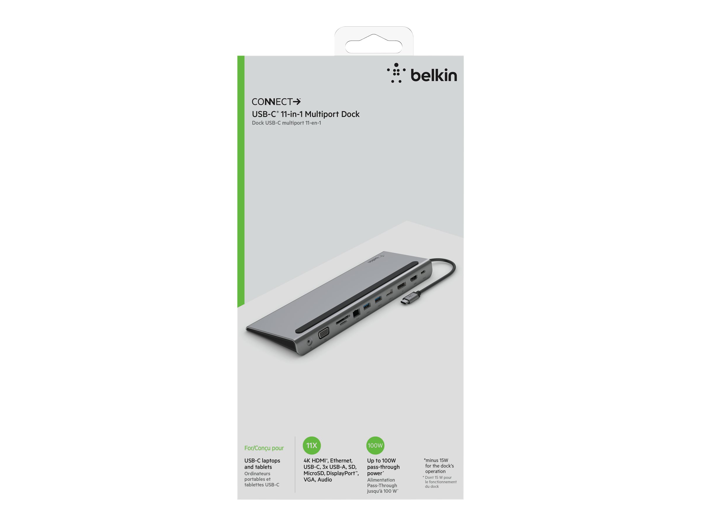| Produktbeskrivelse | Belkin CONNECT 11-in-1 multiport-dock - USB-C - VGA, HDMI, DP - 1GbE |