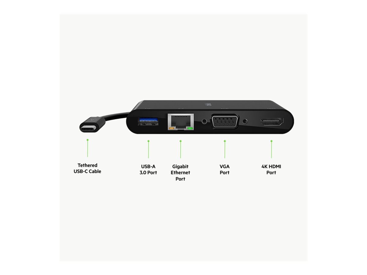 | Produktbeskrivelse | Belkin multimedie og opladningsadapter - USB-C - VGA, HDMI - 1GbE |