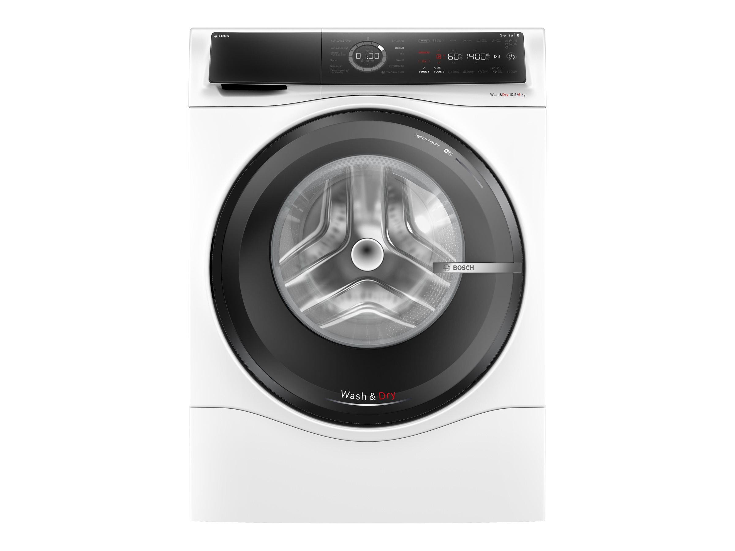 Med ActiveWater Plus- og Hybrid FlexAir-teknologi optimerer Bosch Serie 8-vaskemaskine/tørretumbler vand- og luftstrømmen til effektiv vask og tørring, hvilket reducerer energi- og vandforbruget uden at gå på kompromis med ydeevnen.