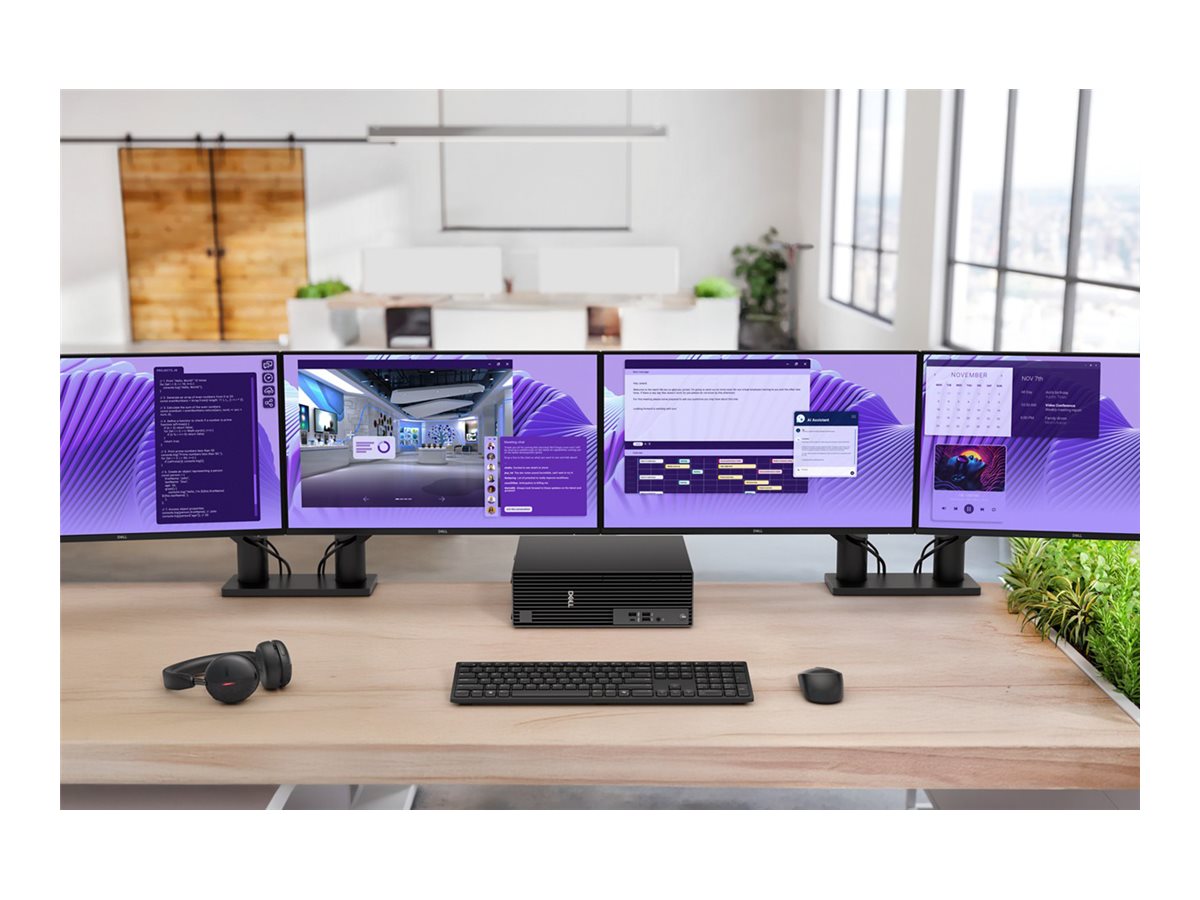 Dell Slim QCS1250 er designet til dem, der kræver effektivitet og ydeevne i en kompakt form. Denne lille desktop har en Intel Core Ultra 5-processor, der kører med en klokkehastighed på 3,4 GHz og kan turbo-booste op til 5 GHz, hvilket giver pålidelig ydeevne til forskellige opgaver. Med 16 GB DDR5 SDRAM sikrer den problemfri multitasking til hverdagens applikationer og krævende arbejdsopgaver.