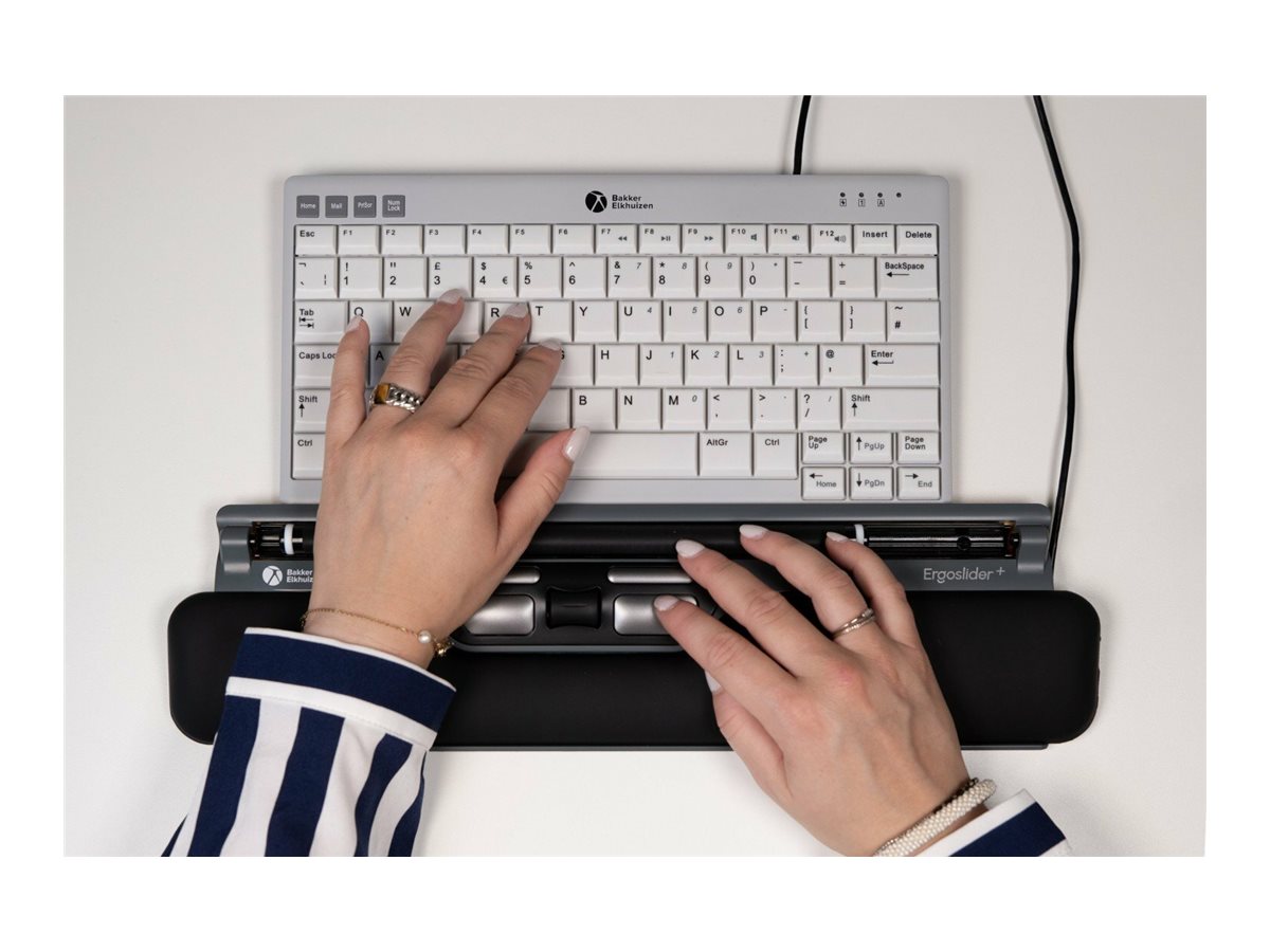 ErgoSlider Plus er designet med forhøjet håndledsstøtte og en rullestang, der sikrer komfort og reducerer risikoen for overbelastning ved længere tids brug.