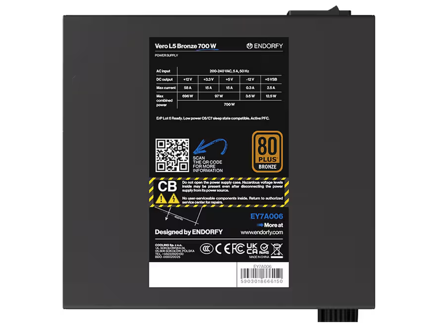 | Produktbeskrivelse | Endorfy Vero L5 Bronze - strømforsyning - 700 Watt |