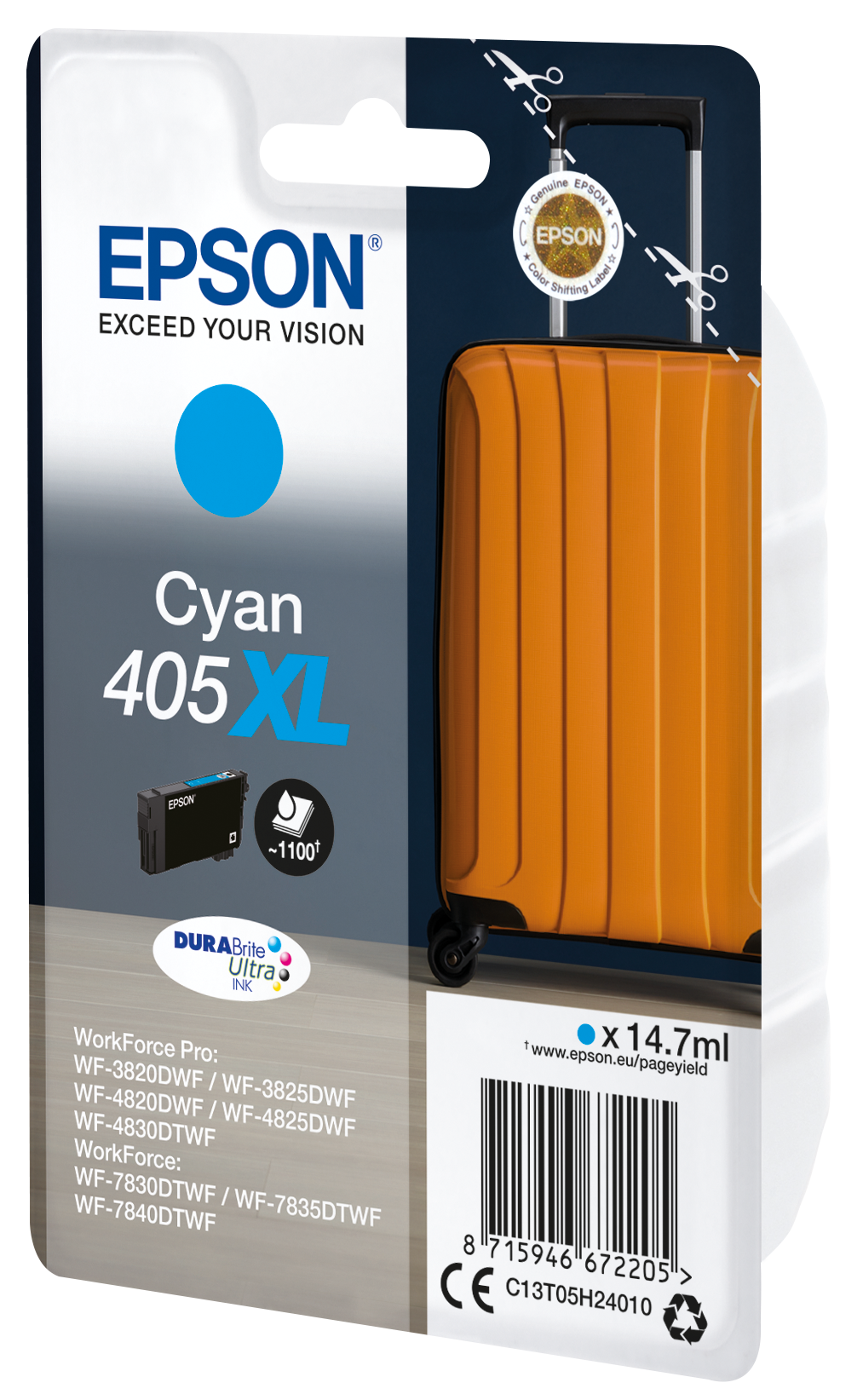 Epsons DURABrite Ultra-blæk er ideelt til fremstilling af laserlignende forretningsdokumenter. Takket være dets blæksystem, der udelukkende består af pigmentbaseret blæk, er dokumenterne modstandsdygtige over for vand, udtværing og overstregning, og deres hurtigtørrende egenskaber er perfekte til duplexudskrivning, og der er en økonomisk overkommelig patron til hver brugertype med både standard- og XL-størrelse. Find det nemt i butikken ved at søge efter Kuffert-billedet.