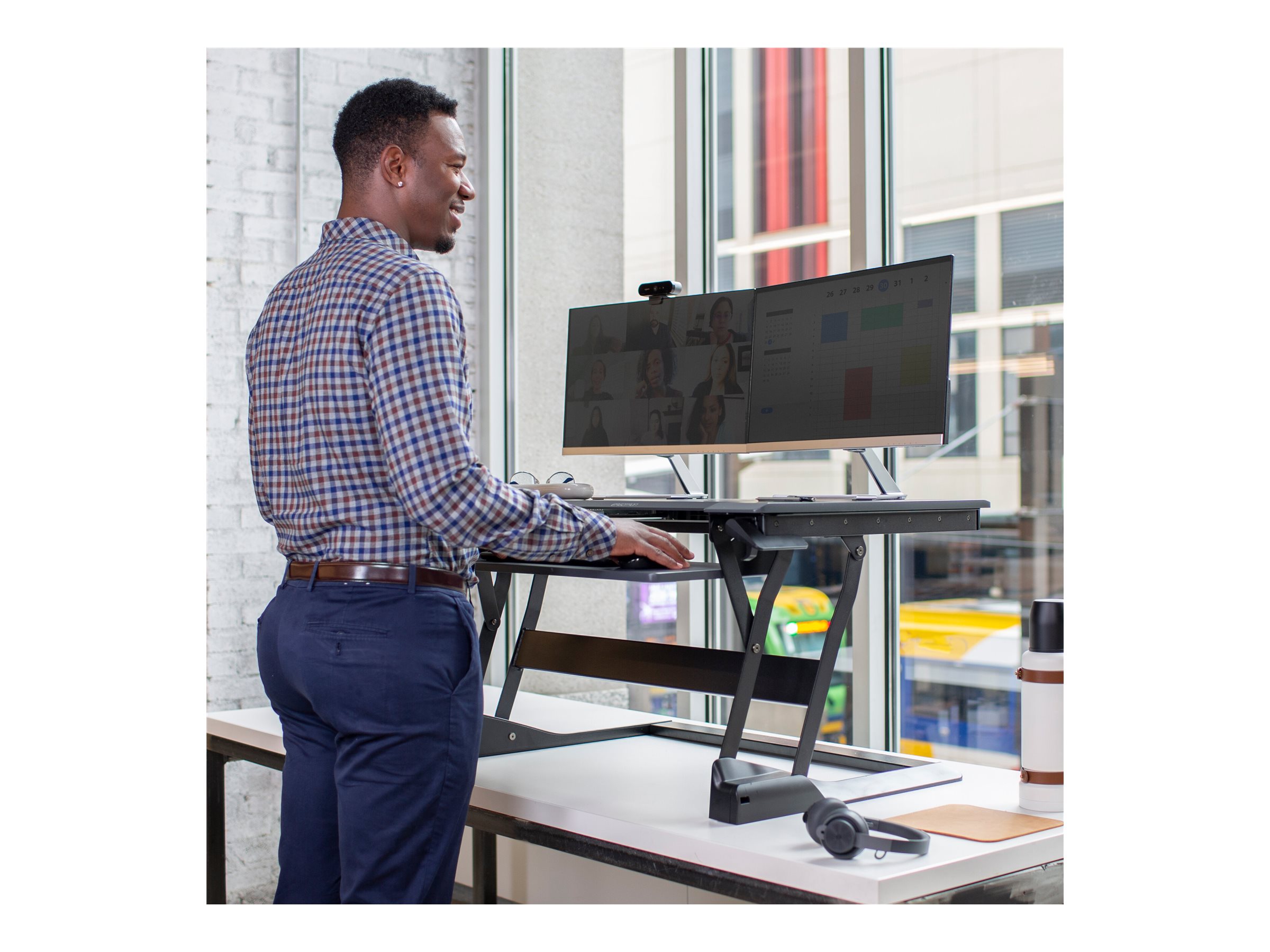 Funktioner Udtræks-tastaturbakke, plads til 2 skærme, rum til op til 30" skærm, 38,1 cm højdejustering