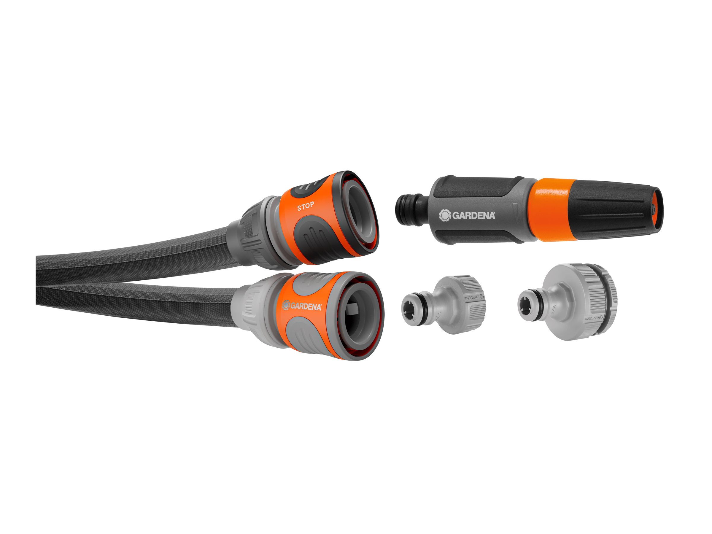 Funktioner Fleksibel, ftalat-fri, letvægt, præsamlet vandstopstik, præsamlet slangestik