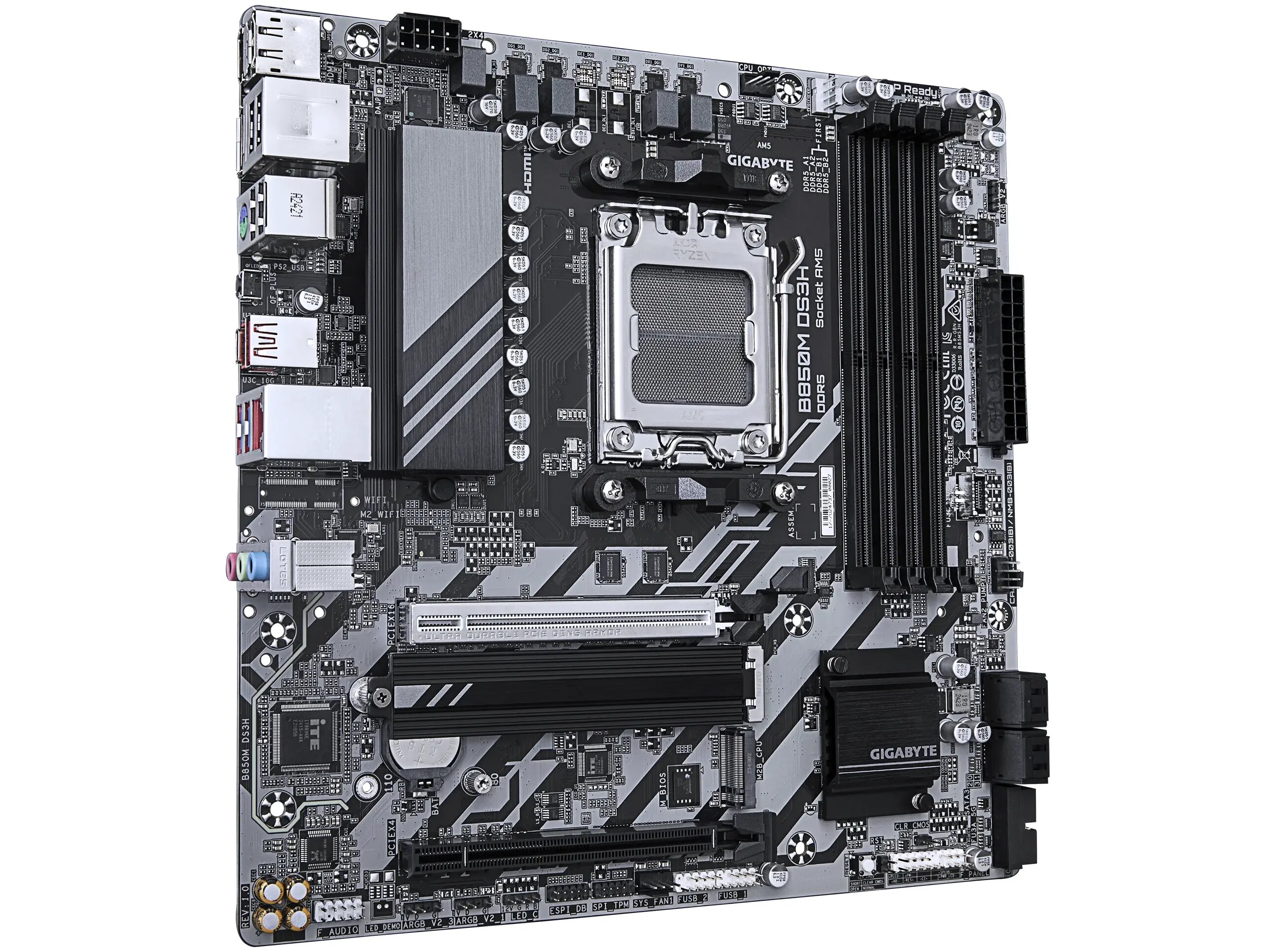 Gigabyte B850M DS3H - Bundkort - Micro ATX - Socket AM5 - AMD B850 Chipset - USB 3.2 Gen 2, USB 3.2 Gen 1, USB 2.0 - 2.5 Gigabit LAN - onboard grafik (CPU påkrævet) - HD Audio (8-kanaler)