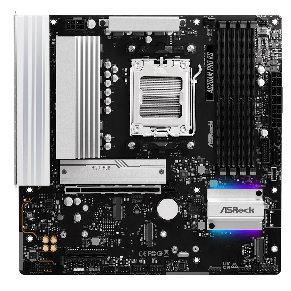 Asrock A620AM Pro RS - mATX - Socket AM5 - 4x DDR5 slots - HDMI 2.1 - DisplayPort 1.4 - Dragon RTL8125BG