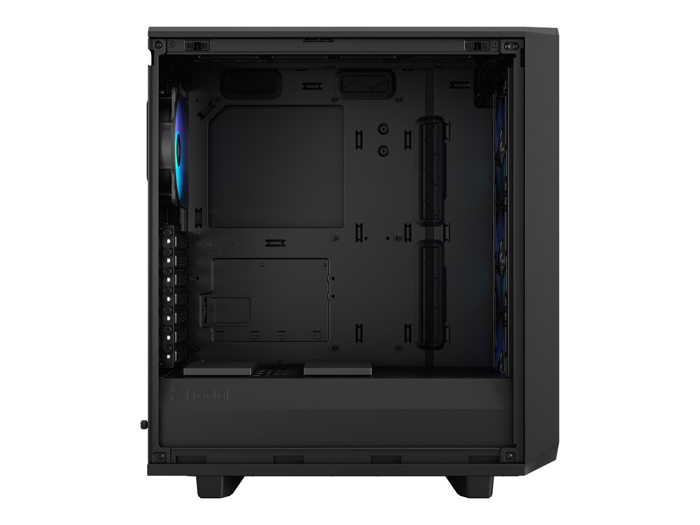 | Kølesystem | Front: 120 mm ventilator x 2 / RGB-blæser, 3 x 120 mm eller 2 x 140 mm blæser understøttet | Top: 120/140 mm blæserstativ x 2 | Bagside: 120 mm ventilator x 1 / RGB-blæser | Nederst: 120 mm blæserstativ x 1 / kræver fjernelse af HDD-bur |