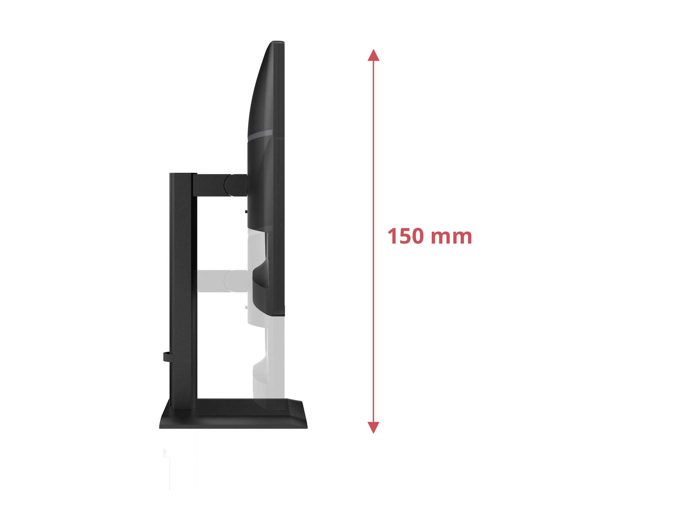 Hæv eller sænk skærmen, så den passer til hver enkelte persons højde og siddepræferencer. Standeren, der er nem at justere, sikrer flere timers behageligt arbejde.