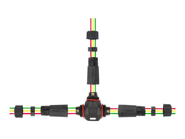 | Egenskaber | Vandafvisende, støvtæt, T-formet, polyposepakning, kan skrues, 85 - 260 V vurderet spænding, til 4.5 - 7.5 mm kabler |