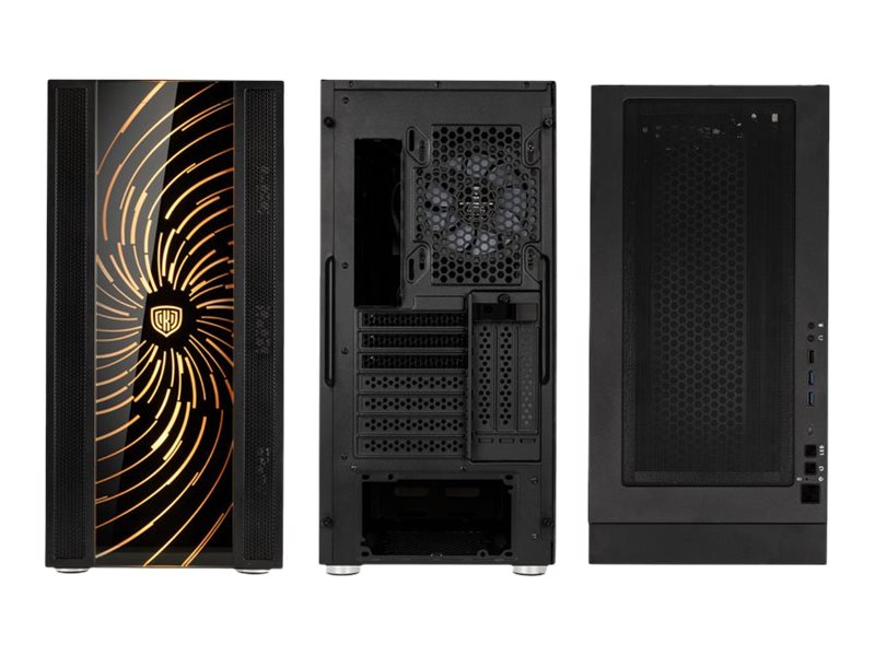 | Egenskaber, systemkabinet | Top panel støvfilter, meshed front panel, aftageligt frontpanel, støvfilter i bunden, understøtter 120/140 mm radiator bagi, understøtter 240/280/360 mm radiator i toppen, RGB-knap, ARGB-blæsere, PSU-dække, understøtter 240/280/360/420 mm radiator i frontpanel |