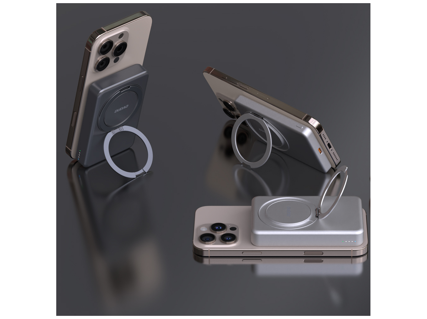 Dudao - Wireless Powerbank - 5000 mAh - 20 Watt - 3A - MagSafe kompatibel - 2 output-stikforbindelser (USB-C x1, Wireless Charging) - Grå