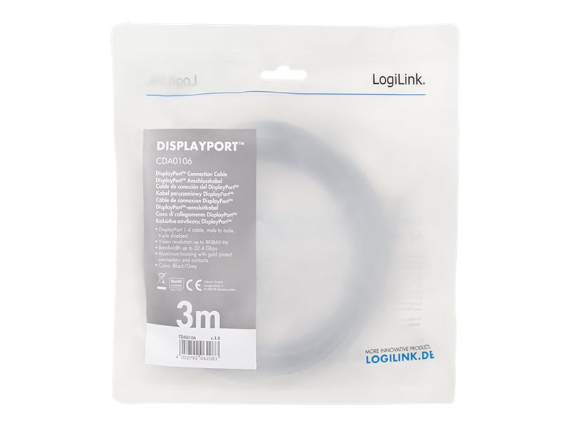 | Produktbeskrivelse | LogiLink - DisplayPort kabel - DisplayPort til DisplayPort - 3 m |