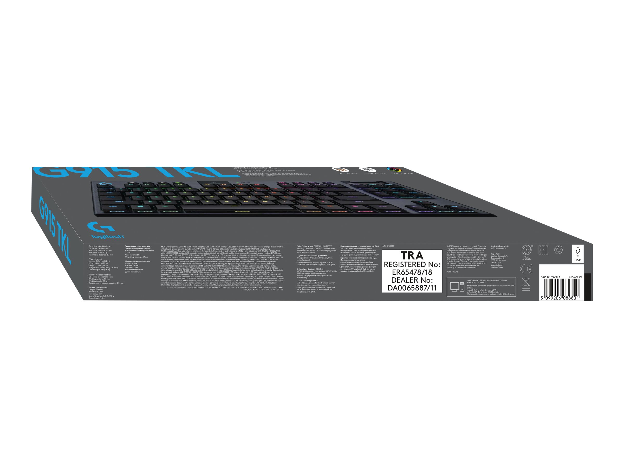G915 TKL er slank og sofistikeret og giver dig en fokuseret højtydende oplevelse med alle de funktioner du har brug for – som f.eks. indbyggede profiler og gamingtilstand. Avancerede funktioner kræver Logitech G HUB Gaming Software som kan downloades på logitechg.com/GHUB Gør G915 TKL til kommandocentralen på din pc