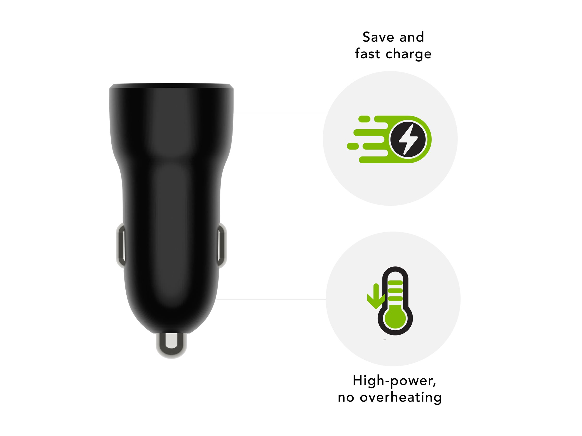 Denne biladapter er fremstillet af 100 % genanvendt plast og er et miljøvenligt valg til opladning af dine enheder.