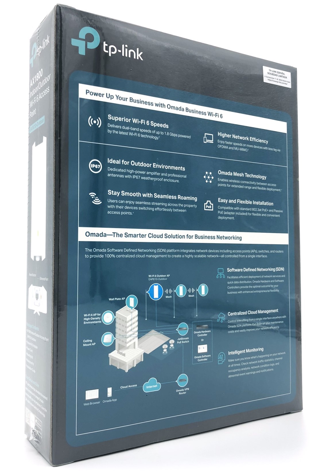 | Egenskaber | Syslog understøttet, E-mail advarsel, Wi-Fi Multimedia (WMM) support, Quality of Service (QoS), nulstillingsknap, vejrfast, rogue access point detektion, Captive Portal, 15KV ESD Protector, 802.1x autentificering, Transmit Power Control (TPC), MU-MIM |