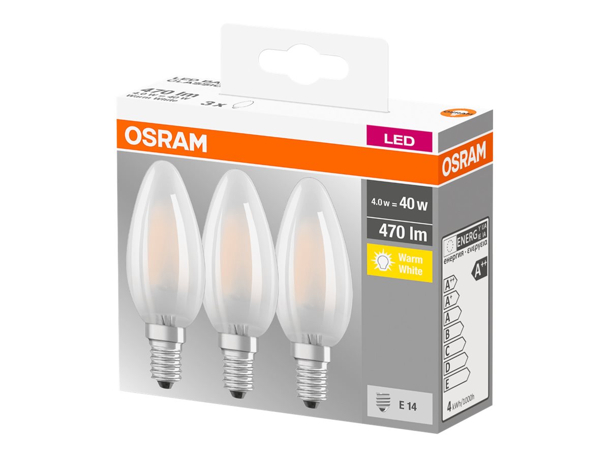 | Produktbeskrivelse | OSRAM LED BASE CLASSIC B - LED-lyspære - form: B35 - E14 - 4 W - varmt hvidt lys - 2700 K |