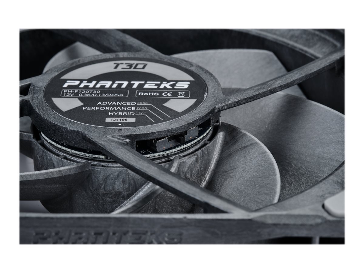 Phanteks T30-120-blæseren har gennemgået mange års udvikling og omfattende test. Kombineret med Phanteks' ekspertise inden for design af kabinetter og luft/vand-kølere er den ultimative pc-køleblæser blevet skabt. T30-120 har et fantastisk aerodynamisk vingedesign, en 30 mm tyk ramme og er fremstillet af kvalitetskomponenter i industriel kvalitet for at opnå en perfekt balance mellem høj køleydelse, støjsvag drift og fremragende lydkvalitet.