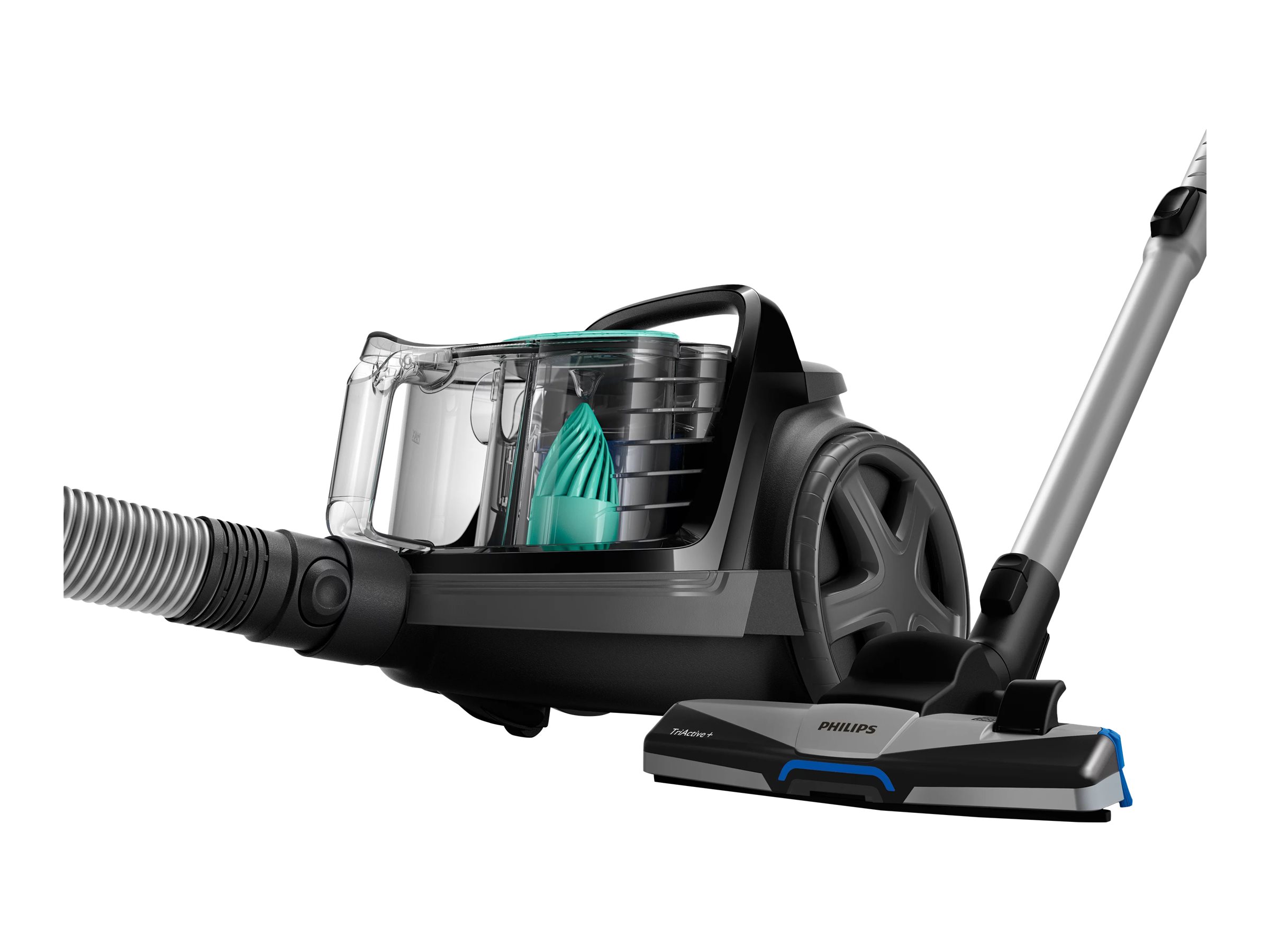 | Inkluderet tilbehør | Redskab til fuger, mundstykke til hårdt gulv, TriActive+ dyse, integreret børste |