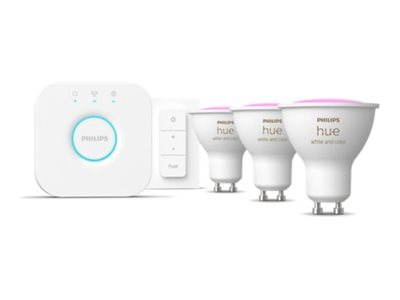 | Produktbeskrivelse | Philips Hue White and Color Ambiance Starter Kit - trådløst belysningssæt - LED-spot lyspære x 3 - GU10 - 4.2 W - multifarvet/varmt til køligt hvidt lys - 2000-6500 K |