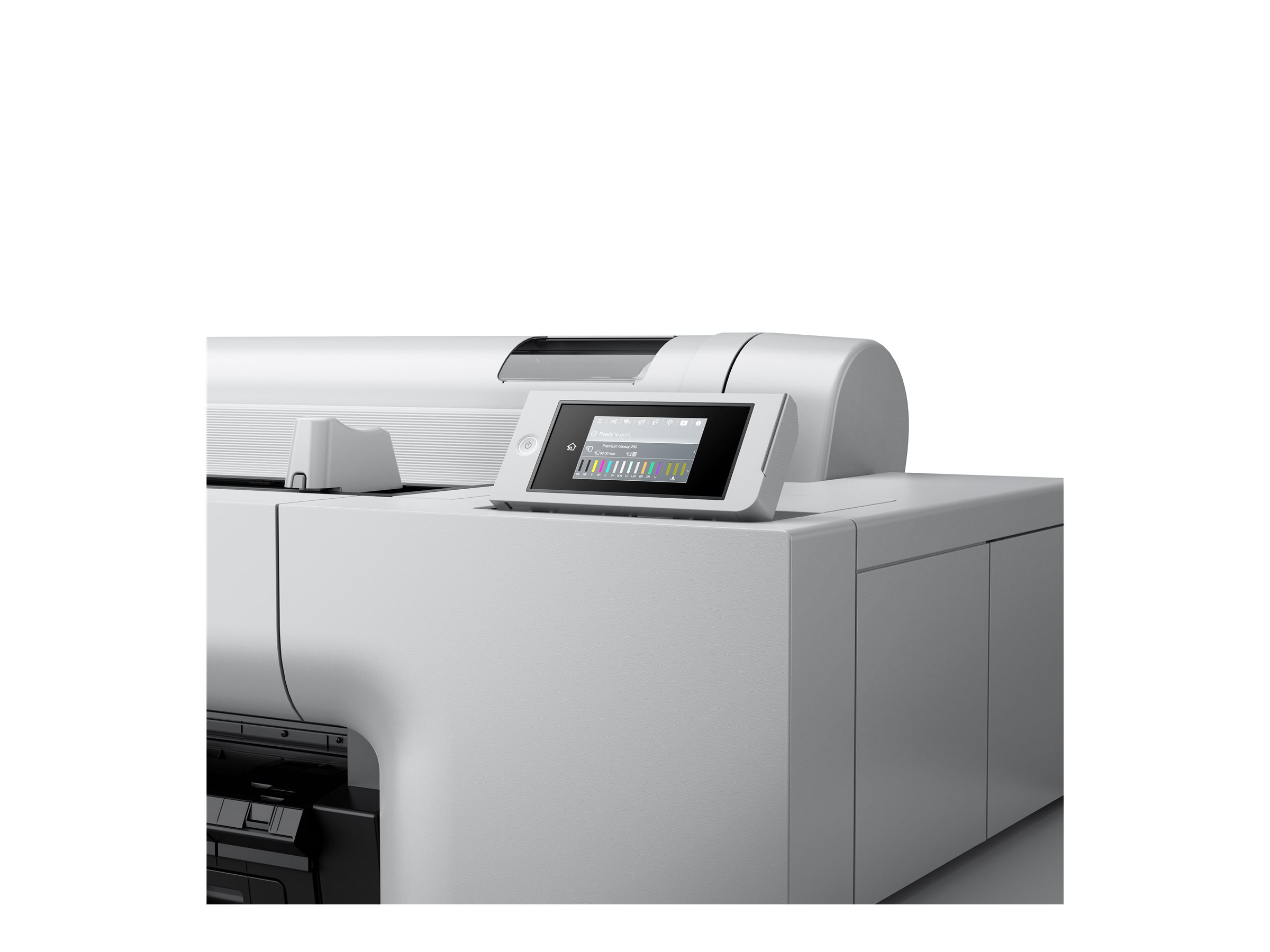 SC-P20500 er udstyret med en 4,3" LCD-berøringsskærm, der giver mest mulig intuitiv betjening. Selv indlæsning af tunge rullemedier er en enkel opgave takket være rulleadapteren.