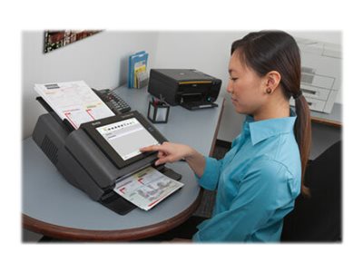 | Scanneregenskaber | Color Dropout, indbygget højttaler, Automatic Image Orientation, Blank Page Removal, indbygget mikrofon, Auto Crop, Perfect Page, Ultrasonic Multi Feed Detection, Deskew, 9,7" touchscreen LCD-skærm, kantfyld, hulfyld, stimefilter, Windows 10 loT Enterprise LTSC 2019 |