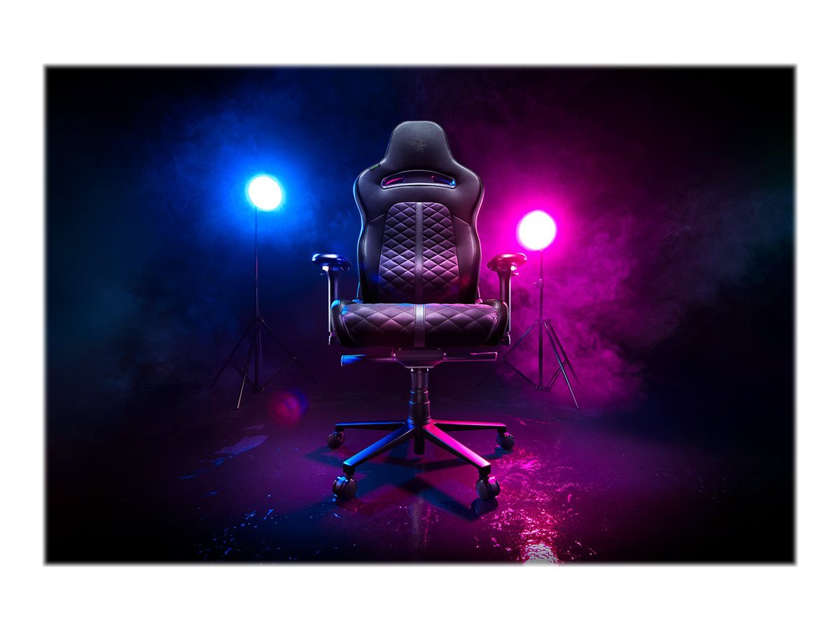 | Produktbeskrivelse | Razer Enki - stol - højdensitets polyuretan støbt skum, elastomerisk polyuretan (EPU), stålramme, aluminiumbase - sort |
