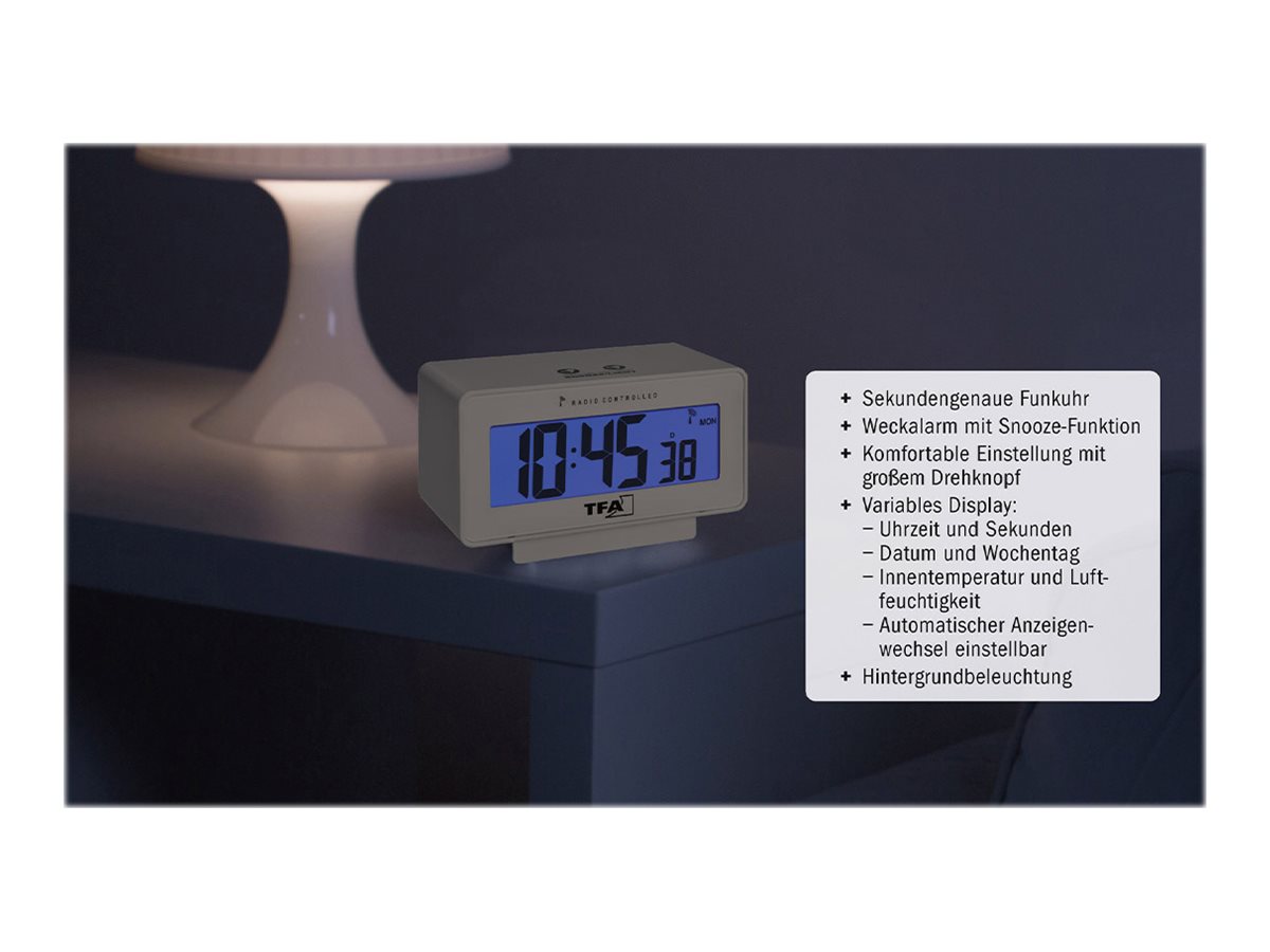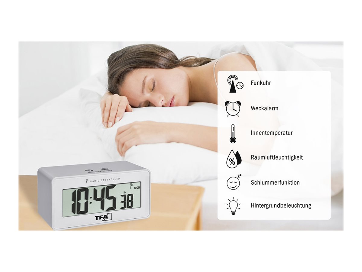 | Produktbeskrivelse | TFA Change - alarmur - rektangulær - elektronisk - desktop - hvid |