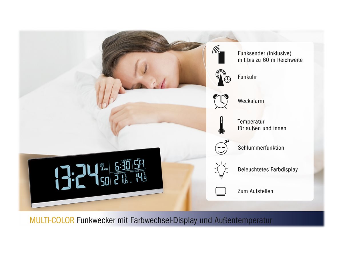 | Produktbeskrivelse | TFA MULTI-COLOR - alarmur - rektangulær - elektronisk - desktop - sort |
