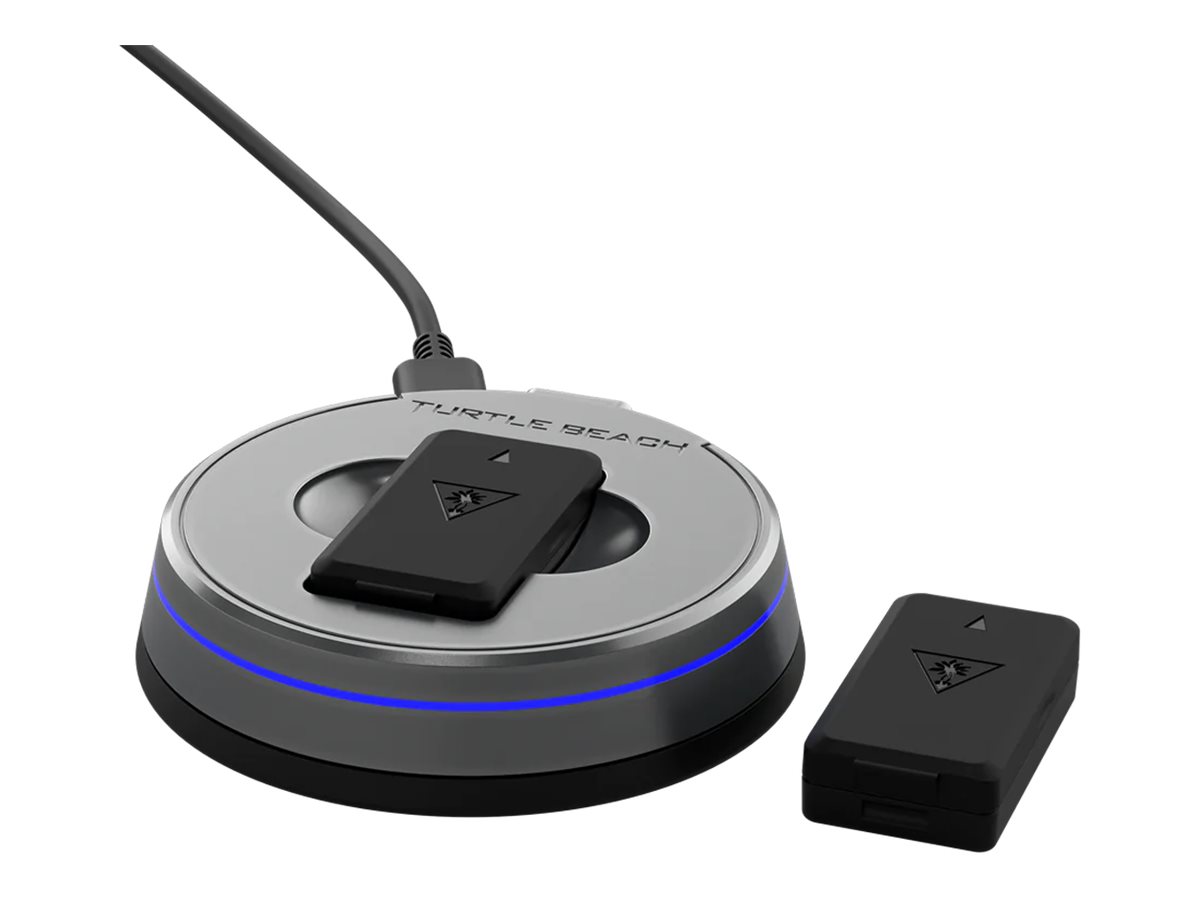 | Udstyr inkluderet | Beskyttende pose, trådløs opladningsstation, Turtle Beach-mærkat, USB-C opladningskabel, 2 x rechargeable battery packs |