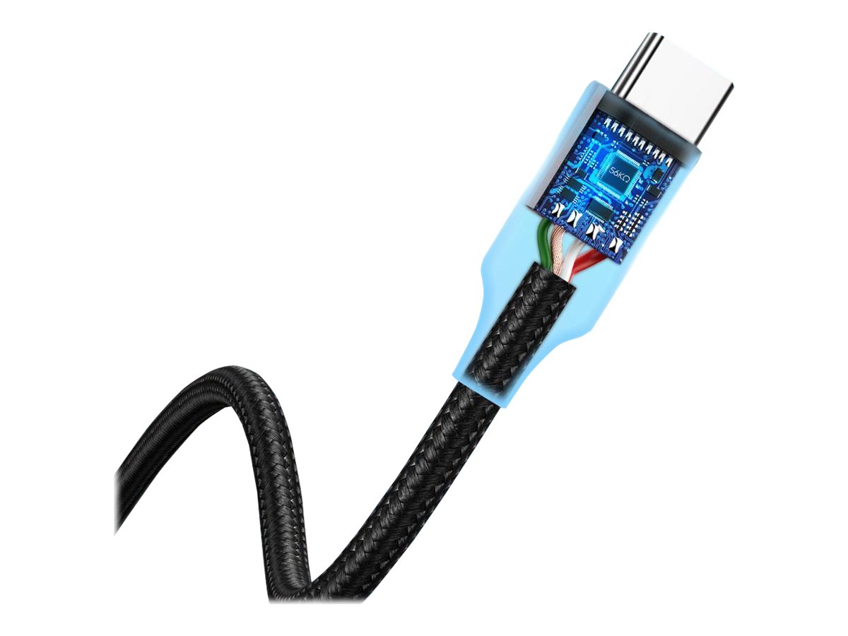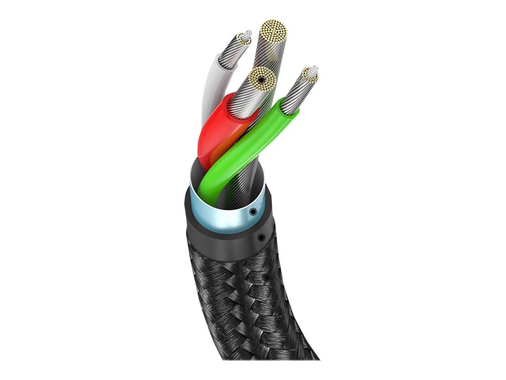 | Egenskaber | Flettet, overstrømningsbeskyttelse, Quick Charge 2.0, fortinnede kobberledere, Quick Charge 3.0, Samsung AFC, Huawei FCP / SCP, 480 Mbps datahastighed, overspændingsbeskyttelse, modstand 56K Ohm |