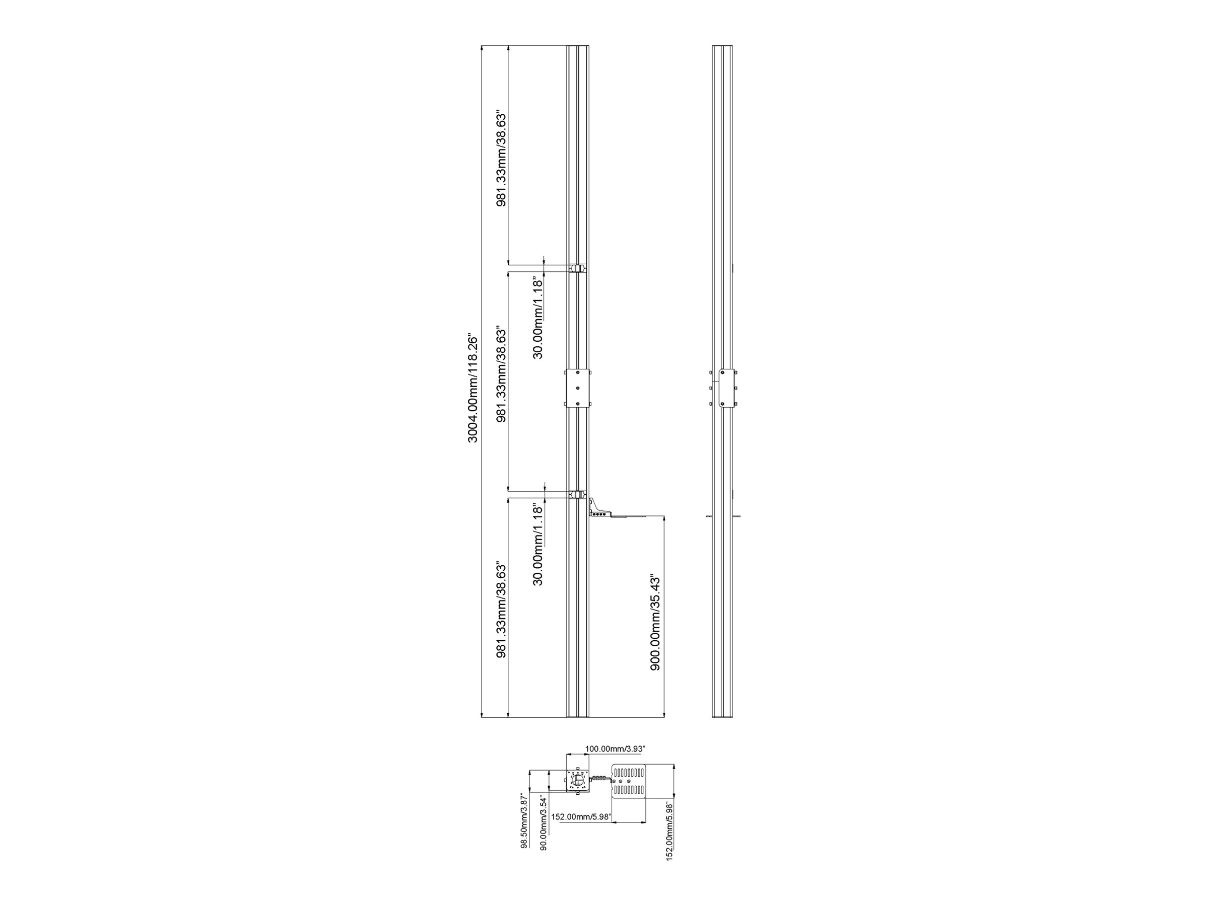The Vision VFM-POST is an advanced mounting component designed for both wall and ceiling installations. Made from durable aluminum, this component is built to securely hold equipment with a maximum load weight of 150 kg, ensuring stability and safety for mounting heavy devices. Features include a dedicated camera shelf and a comprehensive cable management channel that keeps wiring organized and tidy, facilitating a clean and professional setup. Whether used in a corporate environment or for personal projects, the versatile design allows for easy installation and adjustment, making it an ideal solution for effective space management. The Vision VFM-POST caters to a wide range of mounting needs, combining functionality with a sleek aesthetic to enhance any setting.