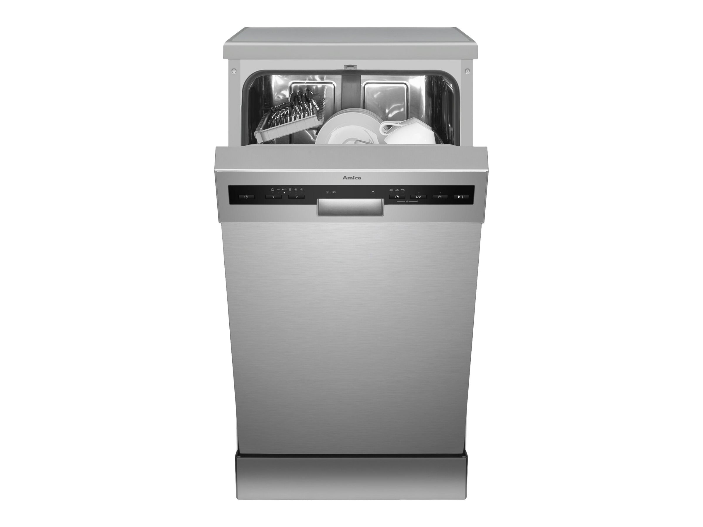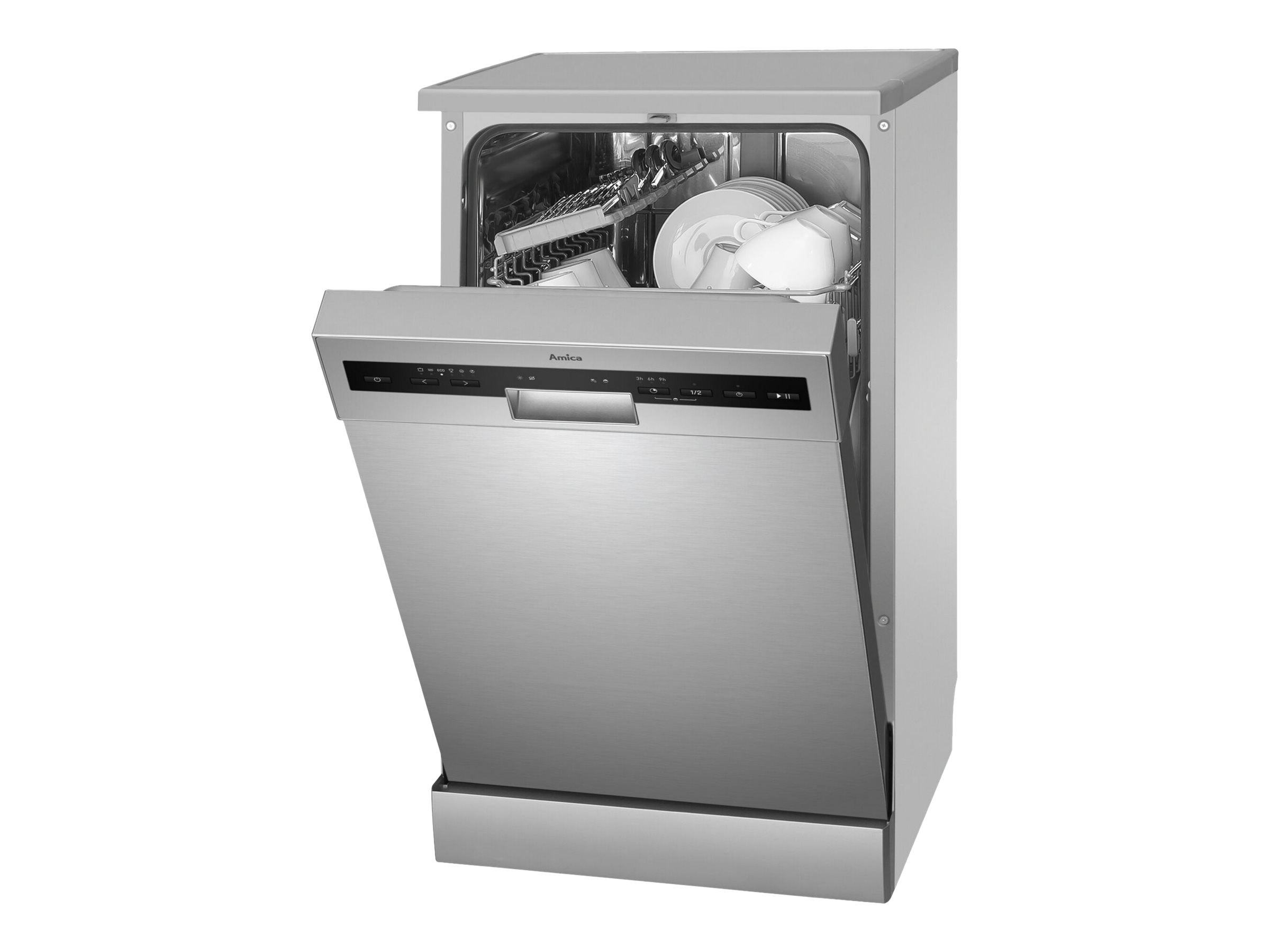 | Produktbeskrivelse | Amica DFM41E6qISMG opvaskemaskine - fritstående - sølv med inox-dør |