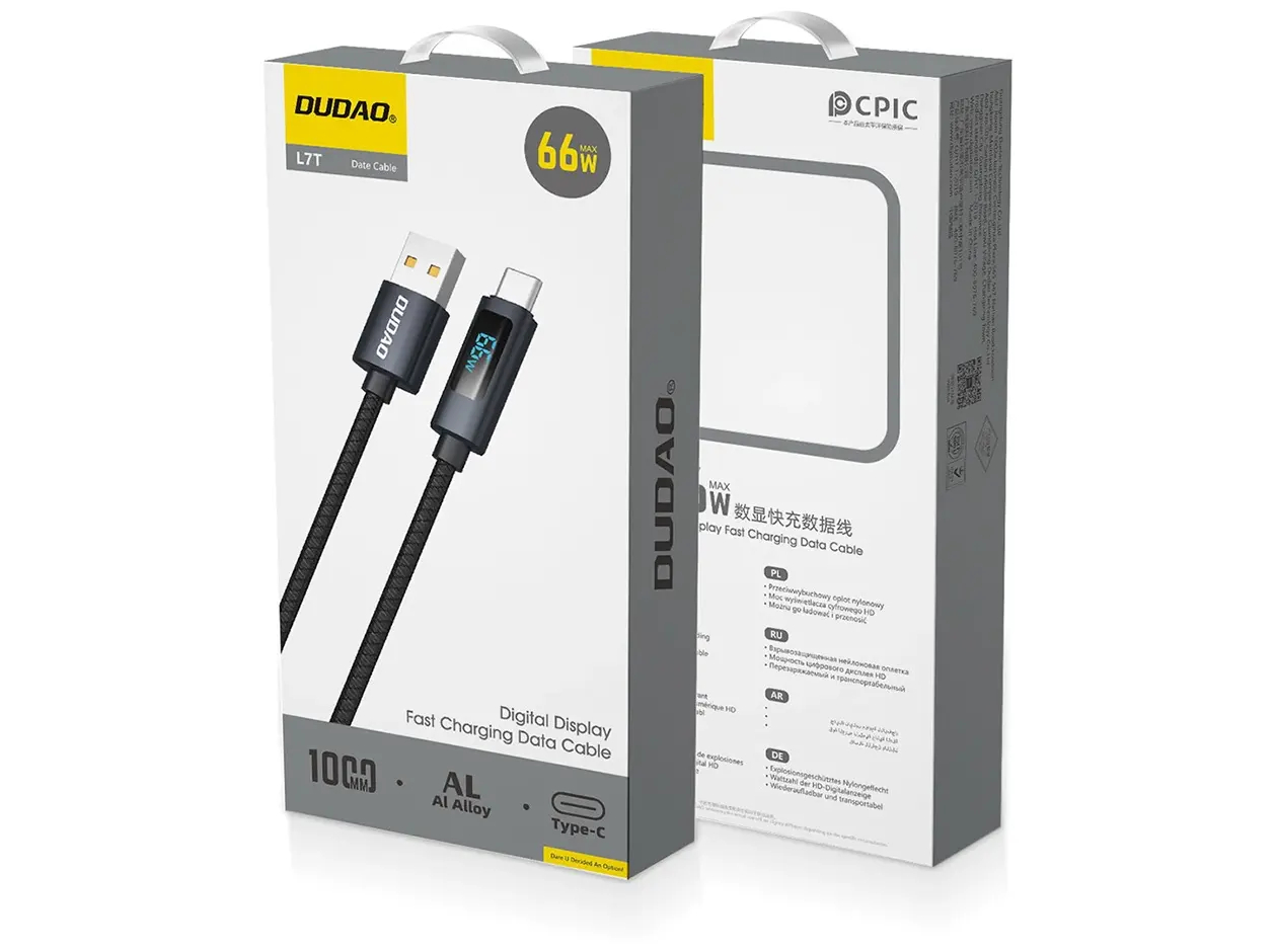 Dudao - USB-C kabel - USB-A (han) til USB-C (han) - 66 Watt - 1 meter - Flettet kabel - sort