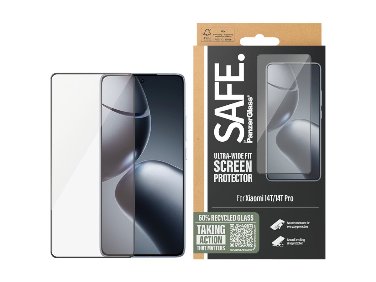 SAFE. by PanzerGlass - Skærmbeskytter for mobiltelefon - ultrabred pasform - glas - rammefarve sort - for Xiaomi 14T, 14T Pro