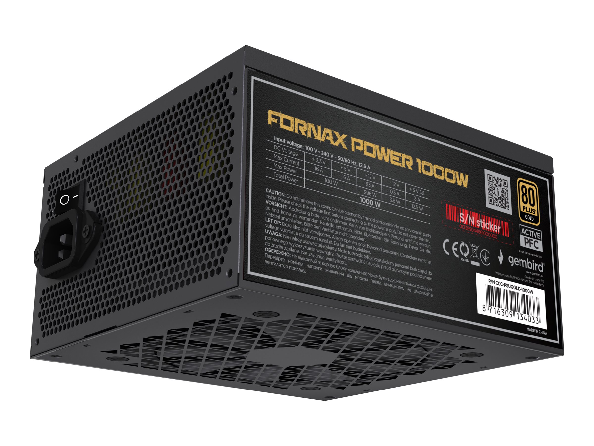 | Produktbeskrivelse | Gembird CCC-PSUGOLD-1000W - strømforsyning - 1000 Watt |