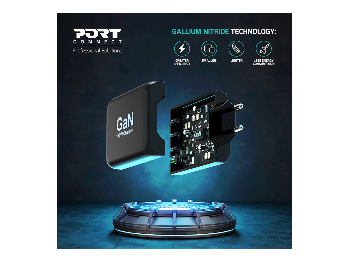| Produktbeskrivelse | PORT Connect strømforsyningsadapter - GaN - USB Type A, 3 x USB-C - 130 Watt |