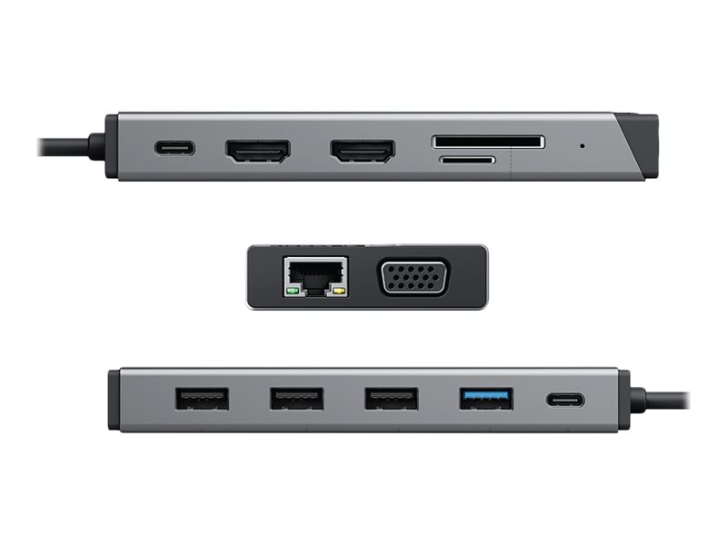 Denne mini-dock har en række grænseflader, herunder HDMI, VGA, USB-A og Ethernet, hvilket gør den kompatibel med forskellige enheder og perifere enheder.