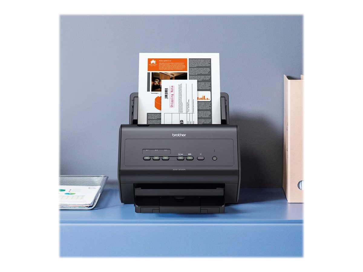 Brother ADS-3000N - Dokumentscanner - Duplex - 215.9 x 5000 mm - 600 dpi x 600 dpi - op til 50 ppm (mono) / op til 50 ppm (farve) - ADF (50 ark) - op til 5000 scanninger pr. dag - USB 3.0, Gigabit LAN, USB 2.0 (Host)